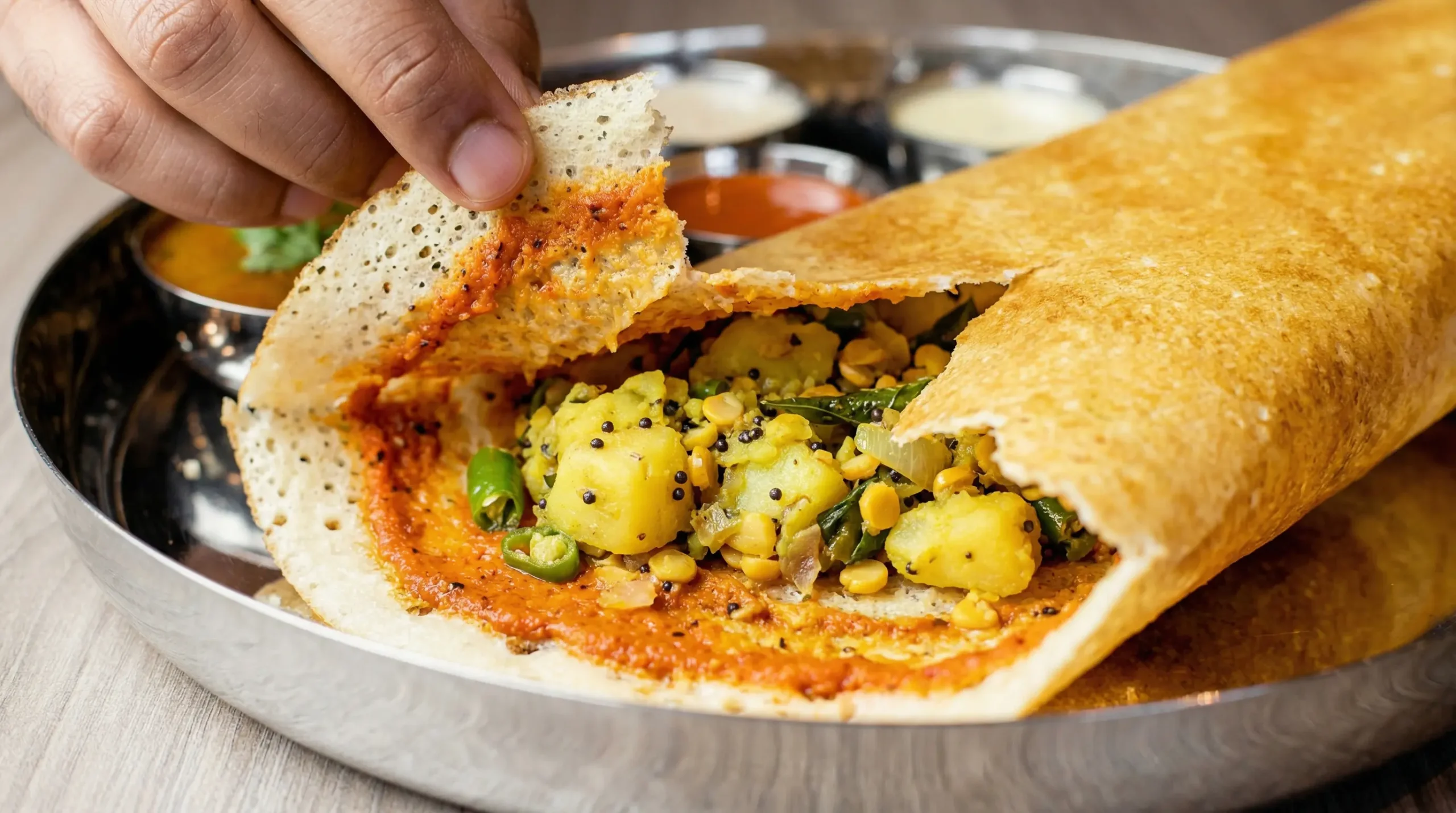 🌱 Dietary Bonus: Because it is made entirely of rice and lentils, a traditional dosa is naturally gluten-free, making it a fantastic option for guests with dietary restrictions!
